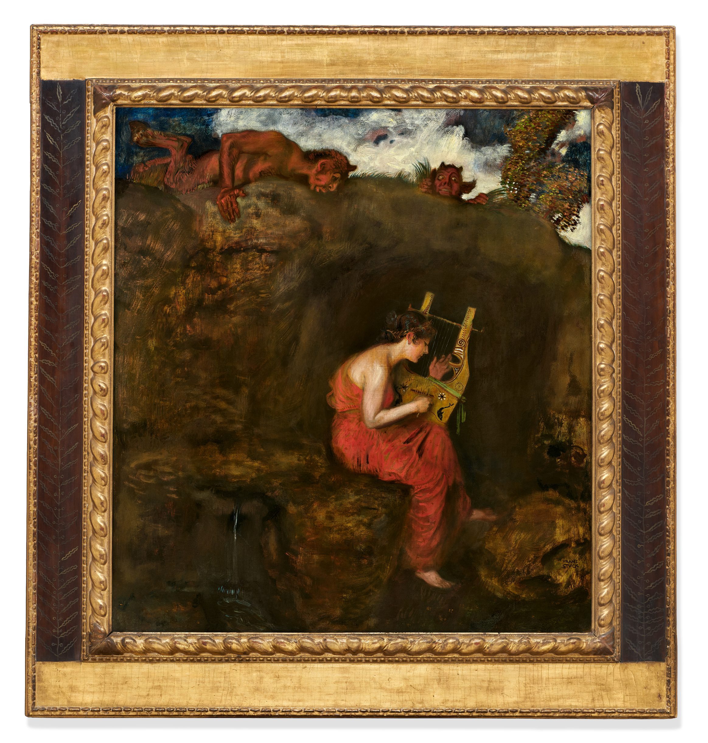 In 1899 when Stuck completed the present painting, he was already a feted and financially successful artist seeing his national and international careers advance side-by-side. At the first Secession exhibition in 1893, he showed the iconic painting Sin, a key example of German Symbolist painting. That same year, he was awarded a gold medal at the Chicago World’s Fair. A solo exhibition at the 1909 Venice Biennale followed.